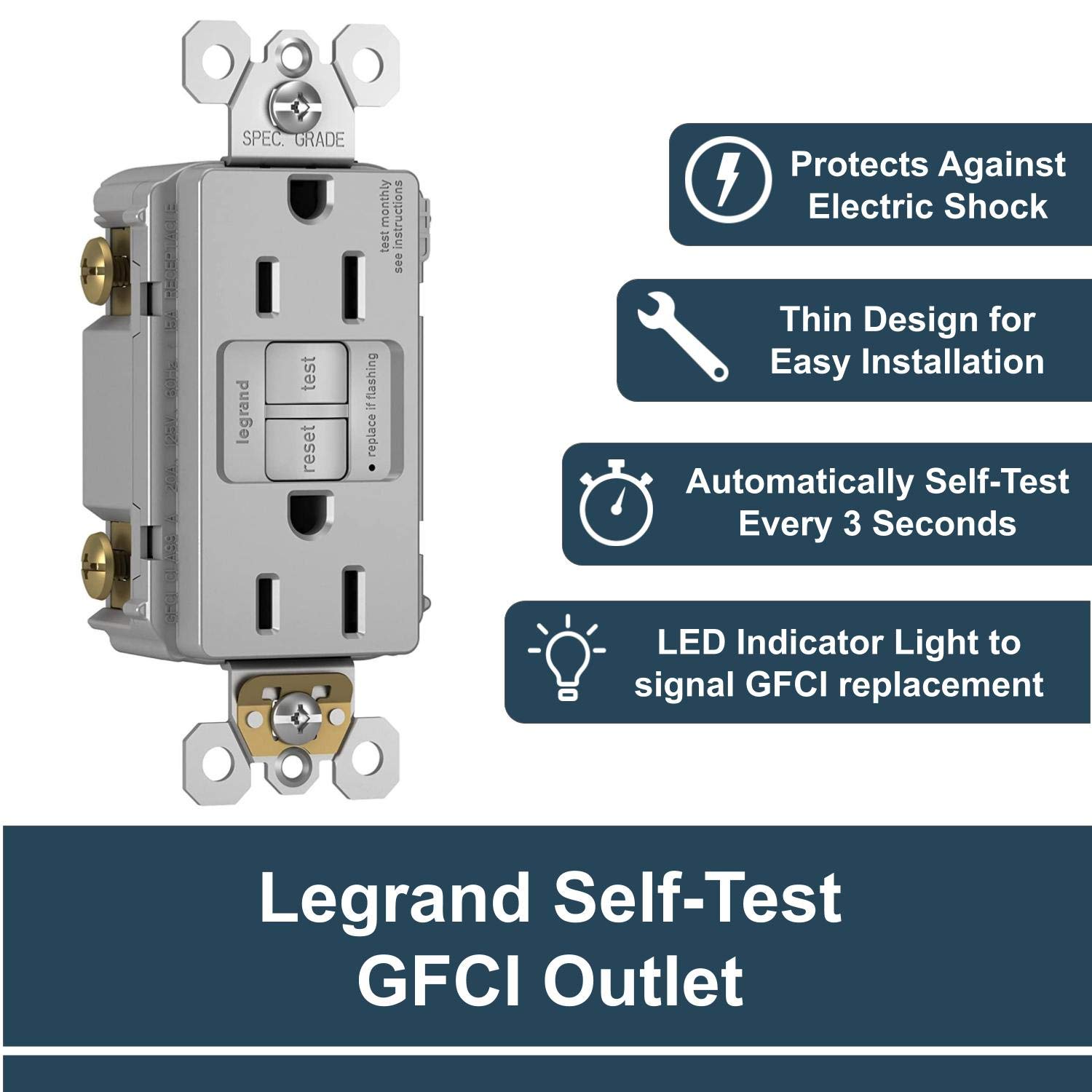 - Quality Materials - This Legrand Radiant GFCI is the only GFCI that tests itself every three seconds, instead of the industry standard three hours, providing a level of reliable electrical protection that’s unprecedented