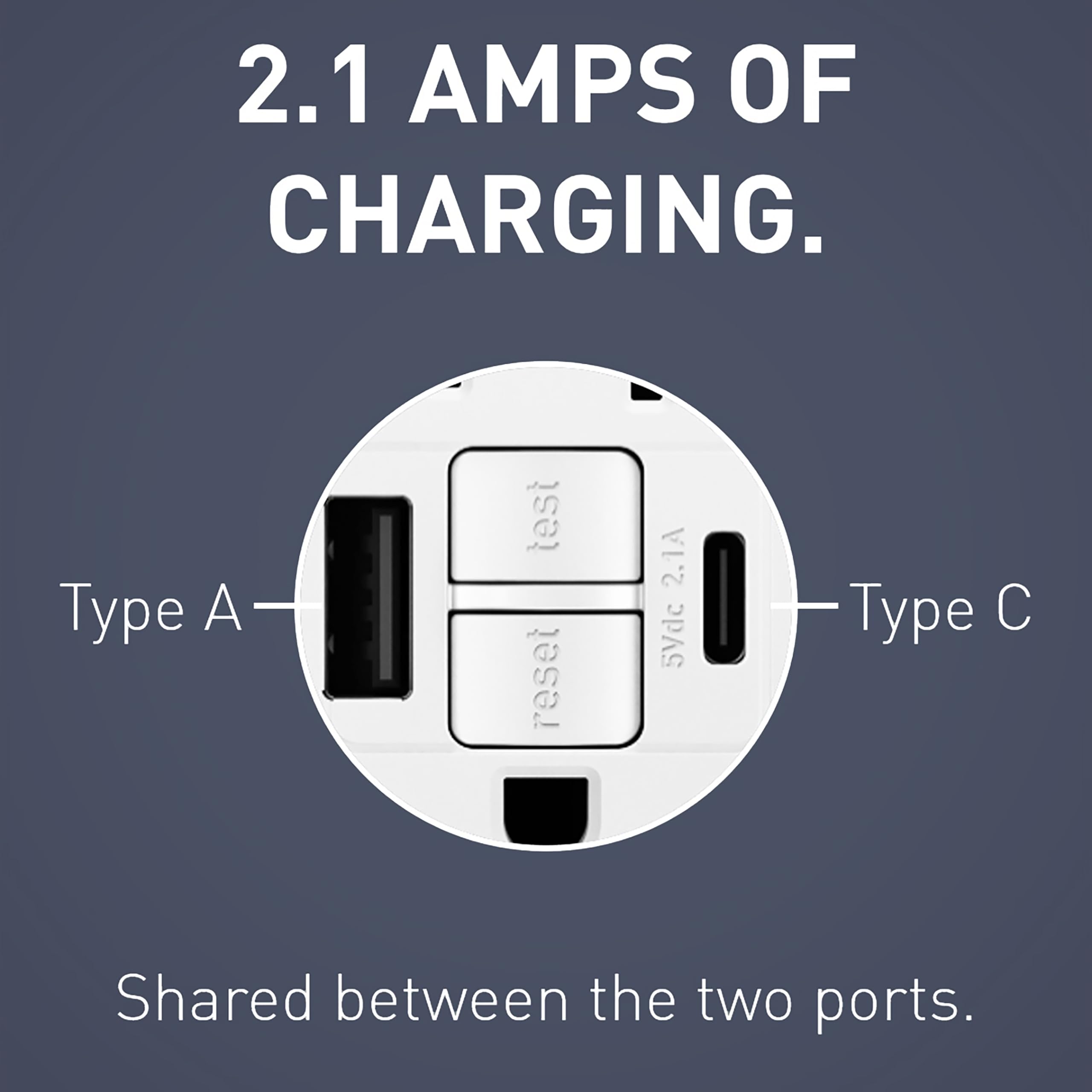 - Use - Charge without bulky AC adapters using this gfci usb outlet with two 5-volt DC USB ports that work with USB 2.0 & 3.0 compatible devices and 3.1A total USB charging capability shared between both ports